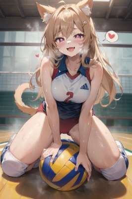 (((masterpiece))), (((best quality))), (((ultra detailed))), (((high-resolution))), ((super fine illustration)), ((Ultimate cutie)), detailed beautiful face, shiny hair, (furry:1.7), cat ears, (cat tail), (gyaru), (medium breasts), (((solo))), (((seductive smile))), (embarrassed expression), (((blush))), half open mouth, (Eyes are heart marks), (heart shaped pupils), BREAK, kneeling, ((sit astride the Perfectly spherical 6-inch volleyball)), ((straddling on the Perfectly spherical 6-inch volleyball)), ((((Perfectly spherical 6-inch volleyball fits perfectly crotch)), (((Rub the Perfectly spherical 6-inch volleyball against crotch)))), BREAK, adidas, (Collared Volleyball Uniform), sleeveless volleyball uniform, ((buruma)), (knee pad), (elbow pad), (((sweat))), (((covered in sweat))), (breath), in Volleyball Court, in gymnasium, lighting, looking at viewer, full body,(spoken heart), , <lora:hairdetailer:0> <lora:sensualface_type2:0.45> ,,,,,,,,,,,,,