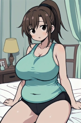 masterpiece, best quality, extremely detailed, anime, teenage girl, huge breasts, plump body, large size, fair skin, brown hair, ponytail, black eyes, (dark blue buruma), gym uniform, cool, schoolyard, <lora:agomaru:1> <lora:eyecolle_mokuren_v100:1>,