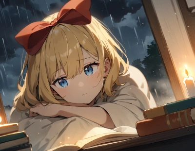1girl,blonde hair,short hair,blue eyes,(hair bow:1.4),red bow,trying,put on,(hairpins:1.2),big red bow,in front of mirror,bathroom,sink counter,brushing hair,holding ribbons,hair accessories,focused expression,tongue out,anime style,Japanese anime style,delicate features,loli,indoor scene,anime style,masterpiece illustration,highly detailed,best quality,aesthetic,