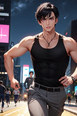 ((masterpiece, best quality, extremely detailed, absurdres)),masterpiece, best quality, high quality, extremely detailed, very delicate and beautiful, (female 18 years old solo:1.2), (long black hair up to waist with two side up:1.4), bangs to eyebrows, eyes light (eyes sharp and strong glossy glossy eyes, eyebrows glossy, (eyes magenta:1.2), 6.5 head height, (tank top in marigold flower print fashion:1.3), knee socks, (smiling), (running), (dynamic pose), (marigold colorful flower field in background:1.3), blue sky,
