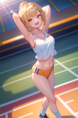 masterpiece, best quality, great, highly detailed CG unity 8k wallpaper, depth of field, (super fine illustration:1.5), illustration, CG, 2D, extremely detailed 1 girl, walking, from above, extremely detailed face, smile, short bob cut hair, (gold hair, light-orange eyes:1.2), upward glance, detailed eyes, sparkling eyes, cute face, kawaii, medium breasts, delicate hair, disheveled hair, floating hair, shiny hair, shiny skin, school uniform, blazer, mini skirt, (Wear thigh-high black socks:1.2), feather Hairpin, walking, nice hands, (very wide shot), School attendance scene, light and shadow, high quality fantasy art, beautiful digital artwork, exquisite character art, morning, <lora:hairdetailer:1> <lora:saturation:0.5> <lora:yawanuri:1> <lora:sensualface_type1:1> <lora:eyecolle_begonia_v100:1> ,,