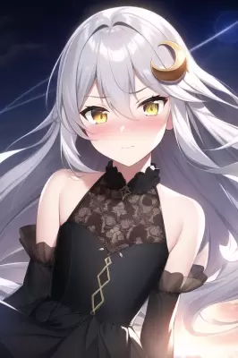 masterpiece, best quality, {{masterpiece}},{{{best quality}}}, {{ultra-detailed}}, {{illustration}}, {highres},{{an extremely delicate and beautiful}},cinematic lighting, {{caustic}}, lens flare,dynamic angle,light_leaks,Amazing,finely detail,extremely detailed CG,Original,{{8k_wallpaper}},beautiful detailed boy,beautiful detailed hair,beautiful detailed eyes,beautiful detailed sky,disheveled hair,floating hair,{{1boy}},{{{{{solo focus}}}}},{{{otoko no ko}}},{{flat chest}},{{{upper body}}},long hair,silver hair,curly hair, crescent hair ornament,hair between eyes,yellow eyes,{frills}, black dress, detached sleeves, bare shoulders, black thighhighs,[[[angry]]],{{{blush}}}(