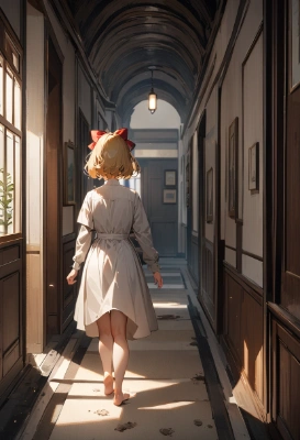 1girl,blonde hair,short hair,blue eyes,(hair bow:1.2), (red bow),shopping,fish market,getting ingredients,making tempura,reaching for vegetables,fish,inspired idea,sparkling eyes,excited,anime style,Japanese anime style,delicate features,loli,red ribbon in hair,store interior,baskets,apron,white hat,daylight,masterpiece illustration,highly detailed,best quality,aesthetic,