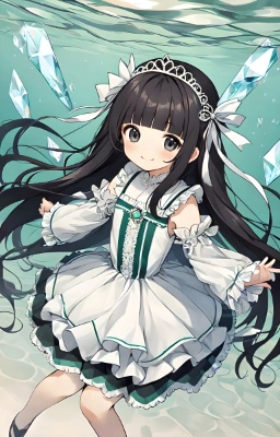 1 girl,(((very longest hair))),smile, Black hair,straight Hair,hair ribbon,mintgreen stripe,Black Eyes,flat chest,straight Across bangs,princess Cut, Very Long Sideburn,roundry Head,Droping eyes,cute,Meekness,Bob Cut,long back hair,12 years Old,loli,Drive
