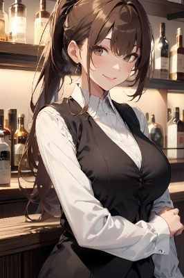 1 lady, long hair, wavy hair, brown hair, ((big breasts)), frilled bikini, white bikini, night, pool, cowboy shot, (sitting on deckchair), ((juice glass on hand)), smilelora:more_details:0.5>,Art Style 2.0,shiny skin, shiny body