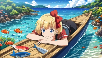 1girl,blonde hair,short hair,blue eyes,(hair bow:1.3),( red bow),wearing,jogging outfit,running,marathon,winter,cold weather,snowy path,breathing hard,focused,anime style,Japanese anime style,delicate features,14 years old,red ribbon in hair,trees,snow,masterpiece illustration,highly detailed,best quality,aesthetic,