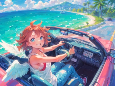 色鮮やかな珊瑚の透き通った海でダイビングをする女の子を作ってみました。