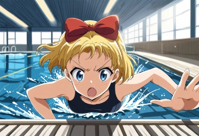 2girls,loli,chibi,short hair,blonde hair,blue eyes,red ribbon,hair bow,red bow,small girls,wearing gym uniforms,athletic wear,hurdle race,competing,track and field,detailed background,anime style,japanese anime style,young girls,energetic,dynamic pose,focused expression,sports competition,outdoor track,sunny day,stadium,determined,action scene,running,jumping,hurdles,teamwork,playful rivalry,vibrant colors,athletic event,summer,physical education,school sports,cheering,effort,fast pace,coordinated movement,exertion,youthful energy,