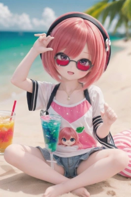masterpiece, best quality, extremely detailed, anime, girl, skirt, chibi character, pink eyes, black hair, pink hair, T shirt, summer, day, sea, chibi character, pink eyes, black hair, pink hair, T shirt, summer, day, sea, girl, bobcut, long sleeve, black eyes, student, twin, bath,