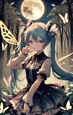 masterpiece, best quality, extremely detailed, anime, girl, skirtmasterpiece, best quality, extremely detailed, anime, girl, 1girl, hatsune miku, vocaloid,Twintails,Princess,longhair,butterfly,fantasy,ry , ,Sepia,twintail,forest,flower,night,full moon,starry sky,fairy