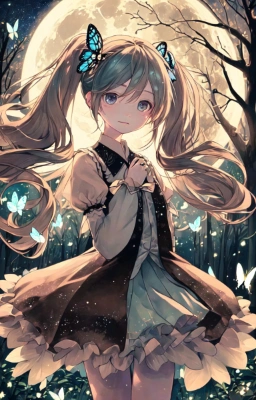 masterpiece, best quality, extremely detailed, anime, girl, skirtmasterpiece, best quality, extremely detailed, anime, girl, 1girl, hatsune miku, vocaloid,Twintails,Princess,longhair,butterfly,fantasy,ry , ,Sepia,twintail,forest,flower,night,full moon,starry sky,fairy