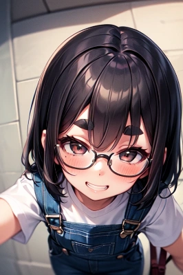 a cute girl in black dress with a bright red shirt and a eyepatch, 1girl, eyepatch, smile, looking at viewer, short hair, ponytail, silver hair, solo, blush, red eyes, grin, shirt, long sleeves, close-up at face, From above, A girl hugging the viewer, a girl looking up at the viewer,