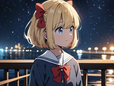 1girl,1knight,short hair,blonde hair,blue eyes,red ribbon,hair ornament,(hair bow:1.3),red bow,loli,young girl,protective knight,medieval armor,detailed background,anime style,japanese anime style,standing together,protective stance,knight's armor,sword,shield,medieval setting,castle courtyard,stone walls,serious expression,determined knight,guardian,contrast in size,heroic,loyal,safety,guardian figure,determined girl,fantasy setting,close proximity,watchful,protective presence,brave,honorable,chivalry,