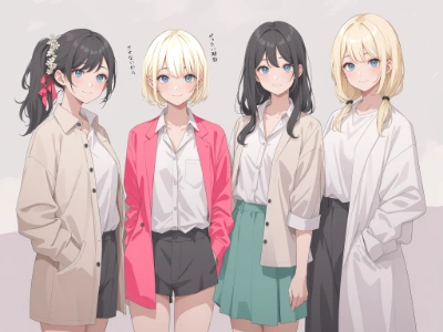 (extremely detailed fine touch:1.3), (hard light, studio light, light rays, dappled light, reflection, shadows, ray tracing:1.0), ///, 4girls, BREAK, (white short hair:1.3), BREAK, (black hair, forehead:1.3), BREAK, (blonde long hair:1.3), BREAK, (black pony tail:1.3), jacket, (guitar:1.5), sing, stage, neon, lights, hippopotomonstrosesquipedaliophobia