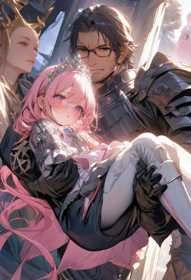 masterpiece, best quality, extremely detailed, absurdres, highres, ultra detailed, (1 female child and old female) , 8yo, kawaii , (glasses:1.2), old girl , pink hair and pink eyes, a laptop PC on table, sitting on sofa, shoulder to shoulder , in living room at home, warm atmosphere,pointing at laptop PC, smile seriously child, surprised old female ,