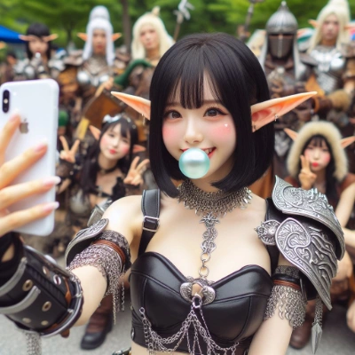 エルフの村、エルフィリス。そこには一人の天然な戦士がいた。彼女の名前はハイソ・エルフェリア。彼女はその名の通り、ハイソックスをこよなく愛するエルフだった。 ある日、エルフェリアが大切にしていたハイソックスが無くなった。村の大通りを駆け回りながら彼女は叫んだ。 「どこ?どこに行っちゃったの?私のハイソックス!」 そんな騒ぎの中、相棒のドワーフ、スタムが現れた。彼はぼんやりとした表情で、エルフェリアのハイソックスを履いていた。 「おい、エルフェリア。このソックス、お前のか?」 エルフェリアの顔は一瞬で赤くなり、次の瞬間には怒りが爆発した。 「スタム!それ私のハイソックスよ!どうして履いてるの!?しかも、伸びてるじゃないの!」 スタムは困った顔をして、ハイソックスを引っ張って見せた。 「いや、朝起きたらこれがベッドの横にあったんだ。試しに履いてみたら、こうなったんだ。まあ、冗談、顔だけにしろよ。」 「冗談じゃないわよ!これは私の大切なハイソックスなの!どうしてこんなことに…!」 エルフェリアは涙目で叫び、スタムも彼女に対して言い返した。 「そんなに怒るなよ。戦士ならば冷静になれ!」 「何だと。。。許せない!恋と一緒だな!!」 その瞬間、村人たちは二人の激しい争いに巻き込まれないように、距離を置いた。エルフェリアは弓矢を引き、スタムは巨大なハンマーを構えた。 エルフェリアは鋭い目つきでスタムを見据えた。彼女の手には軽やかなエルフの弓が握られている。スタムは巨大なハンマーを肩に担ぎ、余裕の表情を浮かべていた。 「行くぞ、スタム!これはただの弓じゃないってこと、見せてやる!」 エルフェリアは弓を引き絞り、矢を放った。その矢は風を切ってスタムに向かって飛んできたが、スタムはすばやくハンマーを振り上げて矢を叩き落とした。 「そんなもの効かないぞ、エルフェリア!」 「まだまだ、これからよ!」 エルフェリアは次々と矢を放つ。彼女の弓術はまさに天才的で、矢はさまざまな角度からスタムに向かって飛んでくる。スタムはそのすべてをハンマーで防ぎながら、一歩一歩エルフェリアに近づいていく。 「そんなに怒るな、エルフェリア。戦いに必要なのは冷静さだろ?」 「冷静になれって?恋と一緒だな、感情は抑えられないのよ!」 エルフェリアは一瞬の隙を見つけ、矢を放つと同時に素早く動き出した。彼女はスタムの側面に回り込み、近接戦闘に持ち込むために短剣を抜いた。しかし、スタムはすでにその動きを読んでいた。 「そんな簡単にはいかないぞ!」 スタムは巨大なハンマーを振り回し、エルフェリアの攻撃を防いだ。彼の力強い一撃は地面を震わせ、砂埃が舞い上がった。 エルフェリアはその隙をついて再び矢を放ったが、スタムは巧妙に避け、次の瞬間には彼女の前に立ちはだかった。ハンマーを振り下ろすその瞬間、エルフェリアは間一髪で飛び退いた。 「やるな、エルフェリア。でも俺を倒すのは無理だ!」 「諦めないわ!これは私のハイソックスのためなんだから!」 エルフェリアは全身の力を込めて弓を引き絞り、最後の一矢を放った。その矢はスタムのハンマーをすり抜け、彼の頬をかすめていった。 スタムは驚きの表情を浮かべ、しばらく沈黙した後、穏やかな笑みを浮かべ呟いた。 「でも伸びたソックスもかわいいよ。」 「え、そう?」 エルフェリアは驚いて一瞬動きを止めた。スタムは彼女の目を見て、続けた。 「うん、なんだか独特の雰囲気がある。新しいファッションみたいだな。」 エルフェリアはしばらく考え込んだ後、ゆっくりと微笑んだ。 「そうか…ルーズソックス、って感じかな。」 村人たちもホッとしたように息をついた。エルフェリアとスタムの争いは、まさかの方向で終わりを迎えた。 その後、エルフェリアの影響で日本ではルーズソックスが大流行することとなった。 エルフィリスの夜空は星々がきらめき、静寂が広がっていた。ハイソ・エルフェリアは村の広場で、星空を見上げながら微笑んだ。彼女の足元には、少し伸びたハイソックスが柔らかく揺れていた。スタムが隣でそれを見て、穏やかに微笑んだ。 「お前もファッションモンスターだな、エルフェリア。」 「冗談、顔だけにしろよ。」 エルフィリスの夜は、二人の戦士の新しい友情とともに、静かに幕を下ろした。