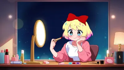 1girl,blonde hair,short hair,blue eyes,(hair bow, red bow),putting,box of caramels,on desk,taking,one caramel,in hand,throwing it,towards mouth,eat candy,anime style,Japanese anime style,delicate features,loli,red ribbon in hair,indoor scene,daylight,masterpiece illustration,highly detailed,anime-style,best quality,aesthetic,
