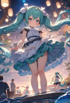masterpiece, best quality, extremely detailed, anime, girl, skirtmasterpiece, best quality, extremely detailed, anime, girl, skirt1girl, hatsune miku, vocaloid, masterpiece, best quality, rating: general, newest,pirates,twintail,longhair,wet hair,Eye Patch,famasterpiece, best quality, extremely detailed, anime, girl, skirtmasterpiece, best quality, extremely detailed, anime, girl, masterpiece, best quality, extremely detailed, anime, girl, skirtmasterpiece, best quality, extremely detailed, anime, girl, 1girl, hatsune miku, vocaloid,Anime illustration: Set against the expansive blue of the coral reef cave, a high girl with a high is swimming. Her black and white metallic bikini, adorned with a floral pattern and frills, stands out. Bubbles and the dance of light refractions enrich the scene.,longhair,tail,Witch,al girl,whale,Princess,Twintails,mini skirt,fantasy,masterpiece, best quality, extremely detailed, anime, girl, skirt1girl, hatsune miku, vocaloid, masterpiece, best quality, extremely detailed, anime, girl, skirtmasterpiece, best quality, extremely detailed, anime, girl, skirt(hatsune miku:1.1)(1girl,solo,loli:1.2), (masterpiece:1.3),(best quality:1.3), white Clothes,frilled bikini, bikini skirt, an extremely delie and beautiful,smile,(arms up:0.5),ry , at ,Side Tail,fantasy,longhair,mini skirt,Twintails,Rubber,blue ,clear ,twintail,Crystal Clear Sea,Footprints,Short Stature,Stars,night,flower,ry sky,sea,ntasy,sea,sky,Caramel,butterfly,beach,beach at night,cherry blossom,blue hair,green hair,blue eyes,colorful,starry sky,cafe