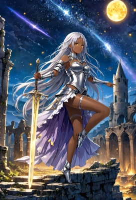 masterpiece, best quality, extremely detailed, anime, , a pretty woman, twintail, ahoge, garter belt, blonde hair, pink eyes, dancer, succubus, fantasy, sunset, different world, forest, ruins, blushing, panty shot, sweating, smiling, sitting,