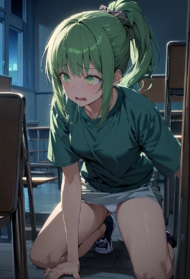 Barricades, evacuation,masterpiece, best quality, extremely detailed, anime <lora:flat2:0> <lora:hairdetailer:1> , a pretty woman, ponytail, tracksuit, long sleeve, green hair, green eyes, original character, big sister, colorful, horror, monster, night, ruins, sweating, surprised, kneeling,