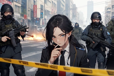 先輩「理沙、宇宙隊に連絡とれるか?」 理沙「なにするつもりなんですか?」 先輩「ゲームは始まったんだ……最初にサイコロをあずけたのは理沙だよ」 理沙「待って! 戦争はじめるつもり?」 先輩「俺を呼んだ時点で、もう始まってる」 理沙「……!?」 4・5枚目:先輩「ちかれた。もう、帰る……ロメオ、フォックストロット、頼む」 R6「お任せください」 F6「メンバを先行させます」