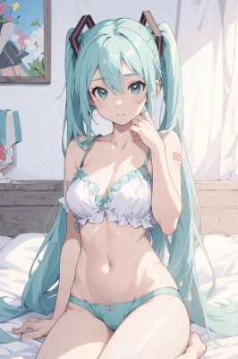 ((masterpiece)), ((high resolution)), ((best quality)), (ultra-detailed), anime, ((extremely detailed)), 4K, (8K), best quality, dynamic angle, (beautiful), solo, (hatsune miku), maid clothes, smile, indoors,