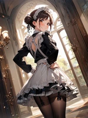 Standing, stick out butt, Hands on waist, looking back at viewer, from bihind, ass, hip,