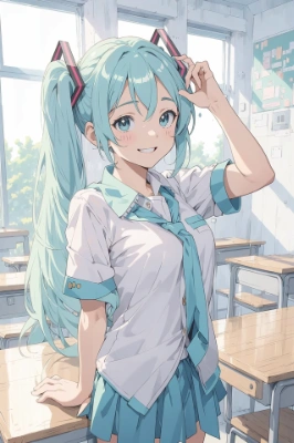 ((masterpiece)), ((high resolution)), ((best quality)), (ultra-detailed), anime, ((extremely detailed)), 4K, (8K), best quality, dynamic angle, (beautiful), solo, hatsune miku, outdoors, smile,