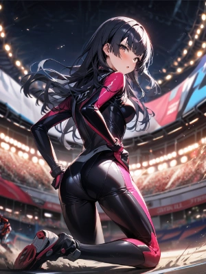 (kneeling:1.2), stick out butt, arm up, armpit, looking back at viewer,
