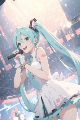 ((masterpiece)), ((high resolution)), ((best quality)), (ultra-detailed), anime, ((extremely detailed)), 4K, (8K), best quality, dynamic angle, (beautiful), solo, (hatsune miku), (yukata), smile, outdoors,