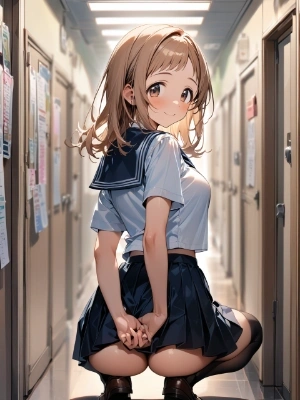 Spread legs, squatting, stick out butt, Hands on hip, looking back at viewer, hip, close up hip,