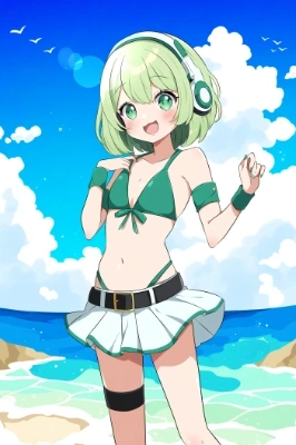 One girl, dark-green eyes, gym uniform, {dark blue buruma}, high-waisted buruma, low-leg, flat chest, {{{{light-green hair}}}}, short hair, white hachimaki, white headband, white socks, white shoes, sports shoes, standing pose, schoolyard, outdoor, anime drawings, best quality, amazing quality, very aesthetic, absurdres