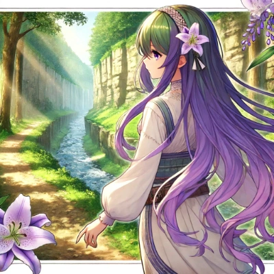 Lily, with long hair in a gradient of wisteria purple and green, and Renge, with silver hair and white highlights, playing with different plush toys together. Both characters have a gentle and happy expression, dressed in a mix of traditional and modern clothing. Lily has green eyes, and Renge has green eyes. Lily has lotus flower hair accessories, while Renge has her usual Japanese-style outfit. The scene is cheerful and playful, with Lily and Renge surrounded by various cute plush toys, creating a warm and inviting atmosphere. The style should be anime-inspired and cute.