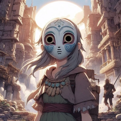 (1)8K,(masterpiece),high resolution,best quality,(ultra-detailed),(ultra detailed eyes),silver hair,red eyes,wear kimono,wear japanese red demon mask,holding a japanese war club,tattoo on the arm,night,red moon,at the shrine,torii gate in the rear,wide-shot