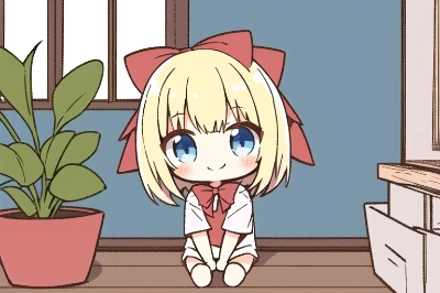 1girl,solo,short hair,blonde hair,blue eyes,(hair bow:1.4),red bow,red ribbon,hair ornament,walking in city,after rain,wearing school uniform,detailed background,anime style,japanese anime style,young girl,feeling hot,wiping forehead,humid atmosphere,wet streets,reflective puddles,overcast sky,casual setting,summer,post-rain humidity,relaxed expression,urban environment,gentle lighting,everyday scene,soft colors,warm tones,modern cityscape,calm,serene,peaceful,