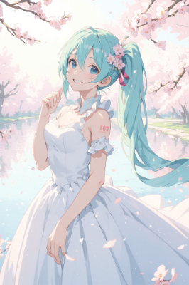 ((masterpiece)), ((high resolution)), ((best quality)), (ultra-detailed), anime, ((extremely detailed)), 4K, (8K), best quality, dynamic angle, (beautiful), solo, (hatsune miku), (idol), smile, in stage, spotlight, singing,