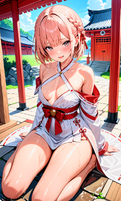 cute,1girl,ultra high res,masterpiece,best quality,high quality, BREAK, maiko,kimono,geisha costume,(smoke pipe:1.4), BREAK, slicked back hair,medium hair,wavy hair,Beige and Ice Blonde hair color,camel eye,wet hair, BREAK, Kneeling with legs together, both hands on the hips, and back slightly arched,sweat,smile,opened mouth,dynamic angle, BREAK, cleavage,flat chest, BREAK, red light district