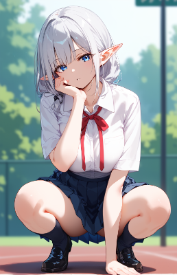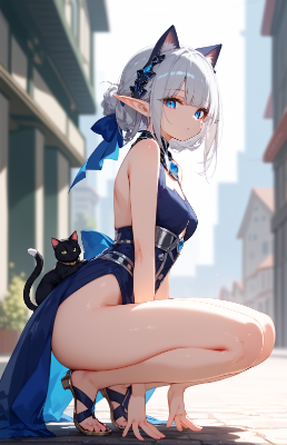 score_9,score_8_up,1girl,elf ears,solo,outdoors,silver hair,,,doyagao,tied back,blurry background,blurry,parted lips,blue eyes,looking at viewer,(bunny girl),(crouching, Abate the cat:1.4),depth of field,classical labyrinth midnight, ,from behind,