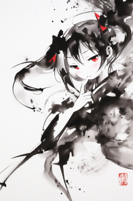 オレンジや水色と派手な色を使っていますが意外と落ち着いた印象ではないでしょうか。 ノースリーブインナーからスカートに連なる黒地が全体を締めてくれつつ、絶妙な配置のグレーがうまく和らげてくれているのでしょう。 それと右肩から左足へのオレンジラインと、左肩から右足へのブラックラインのクロスしているのも好きです。そこに両腕の水色が程よくはっちゃけてる感があって、なんだか見れば見るほどに好きになってくるデザインになりました。 いかがでしょうか。