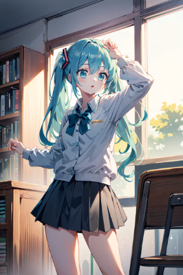 masterpiece, best quality, extremely detailed, anime, girl, ,1girl, hatsune miku, vocaloid, masterpiece, best quality, rating: general, newest,twintail,longhair,blue hair,green hair,tea,green eyes,Japanese style,watercolor,teahouse,flower,blue sky,clear sky,water,lotus