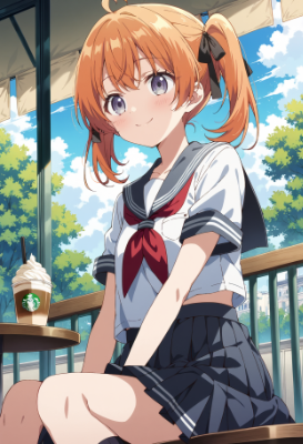 (orange hair:1.1) side ponytail,(brown eyes:1.1),
