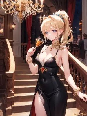 1 girl, peaceful expression, gentle smile, long blonde hair, floral crown, flowing white dress, barefoot, delicate jewelry