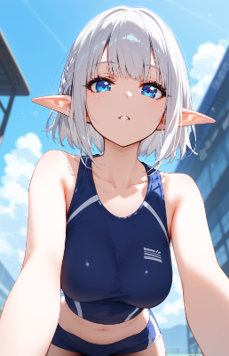 score_9,score_8_up,1girl,elf ears,solo,indoors,(blue eyes),(silver hair),(tired hair,,asymmetrical bangs),flat body,(cook uniform),(cook cap),seductive smile,blurry background,blurry,parted lips,depth of field,dynamic angle,cafe terrace,from back,(Bake muffins),