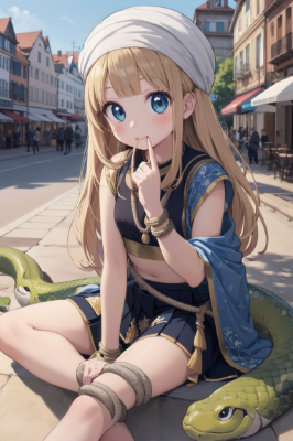 このページは現在開発中です。リニューアル版はすべて開発中のため不具合が起きる可能性があります!一部機能を新しくリリースし直しています!基本的には旧版をそのままご利用ください!旧バージョンへ不具合報告参照生成するいいね24推薦クチナワ2024年07月07日 15時12分使用モデル名:lametta_v1745_fp16対象年齢:全年齢スタイル:イラストデイリー入賞 176 位参加お題:縄#縄PromptsNegativePromptsParameterOthermasterpiece, best quality, extremely detailed, anime, girl, skirt, Wear an Indian sari and wear a turban on your head, Sitting in a town square, playing a flute and manipulating the rope in front of me like a snake,Copy生成情報i_on