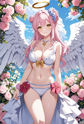 masterpiece, best quality, extremely detailed, anime, 1girl, asuna (blue archive), solo, extra long hair, yellow hair, cleavage, gigantic breasts, thighhighs, halo, gloves, bow, smile, open mouth, hair over one eye, fullbody, <lora:sensualface_type2:1> <lora:eyecolle_chrysanthemum_v100:1> ,,(pale blue swimsuit high leg swimsuit, slingshot swimsuit, criss-cross halter, cleavage, navel:1.3) , sandal, ,,, smile, ,,
