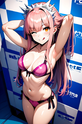 {{{{amazing quality}}}},{{{{{{very aesthetic}}}}}},year 2023,{{{{{{medb (fate)}}}}}}},rider,smiling,fate/grand order,fate/kaleid liner prisma illya,cute,animation,ai-generated,nsfw,{{:q}},,{{pink bikini}},Cute pose,,insanely detailed eyes,indoor,{{{{checkered background, step and repeat, blue-and-white, sofmap logo}}}},{{one eye closed}},from above,armpits,armpits focus,armpits hair,arms up,(fashon model)+++,{Beautiful Backgrounds},{{{beautiful}}},{realistic},{{{{8K}}}},{photorealistic},best quality, amazing quality,very aesthetic,absurdres, best quality, amazing quality, very aesthetic, absurdres