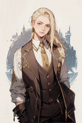 Masterpiece, high resolution, delicate details, retro, antique, nostalgia, fantasy, watercolor, beautiful woman, 30 years old, sideways, profile, platinum blonde (long hair, natural curly hair), light blue eyes, blouse with flared sleeves, high-waisted long tight skirt, art deco, white background,