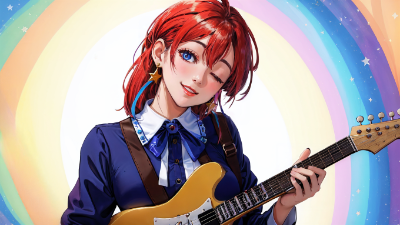 16K, ultra detailed, 1girl, beautiful girl, beautiful face, ribbon around the neck, smile, (fantastic:1.3), pastel colour, colorful image, rainbow,