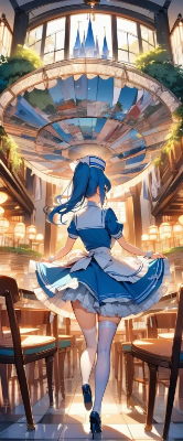 masterpiece, best quality, extremely detailed, anime, girl, skirt,bobcut,blue hair,blue eyes,maid,waitress,fluorescent color uniform,princess,white stockings,pumps,soft serve ice cream,carnival <lora:hime_style-1.0r8:0.8>