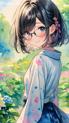 (roughly drawn watercolor:1.3), masterpiece, best quality, extremely detailed, anime, front view, upper body, ((young lady walking on the street)), 18yo, tiny, bob cut, black hair, black eyes, small eyes, round eyes, wearing glasses, wearing big Hairpin, worrying, sadness, face down, dutch angle, upper body, <lora:flat2:-1> <lora:saturation:0.6>